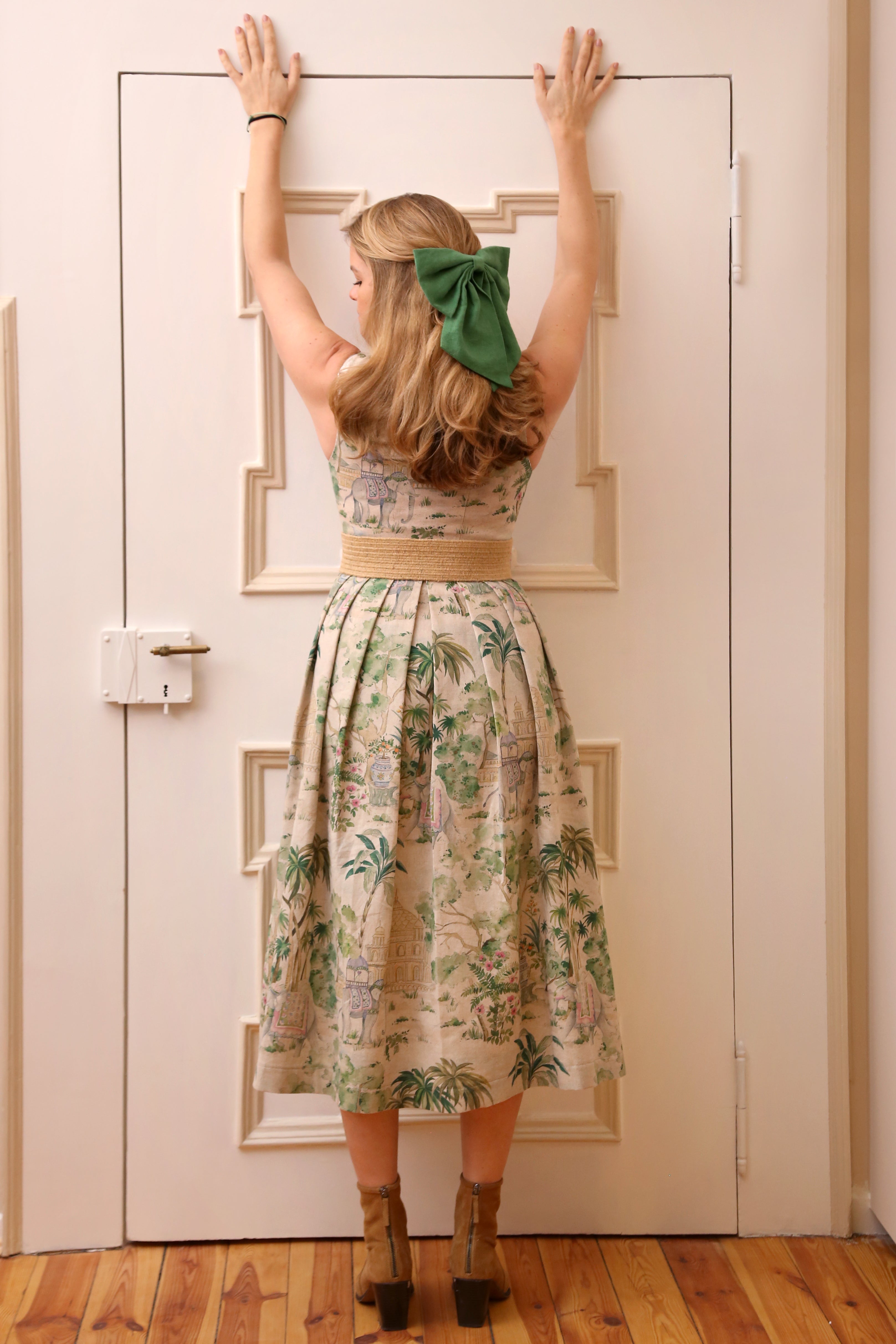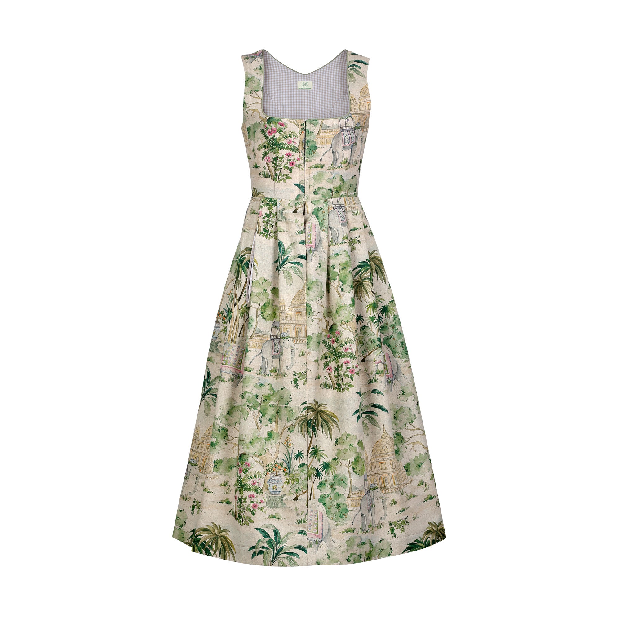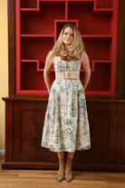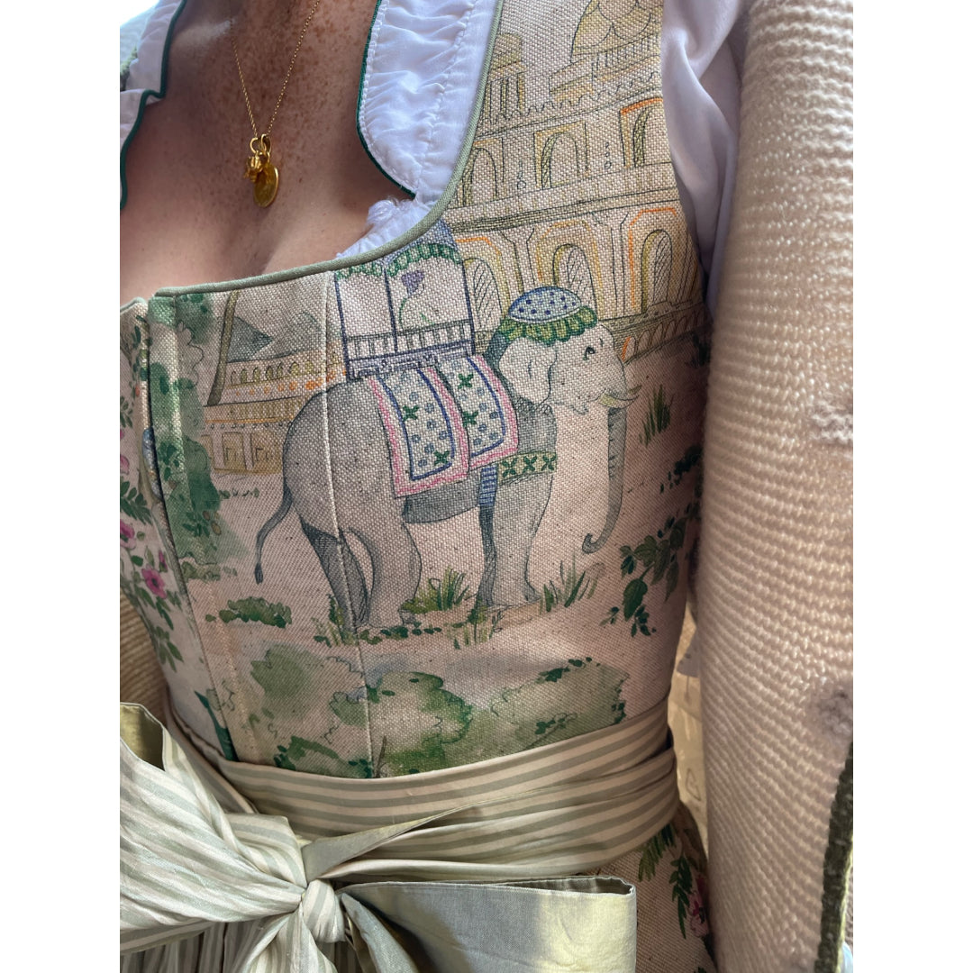 Jedes Dirndl wird handgemacht, somit kann das Muster von den Bildern abweichen. Der Rock ist in Falten gelegt und hat eine seitliche Eingriffstasche.