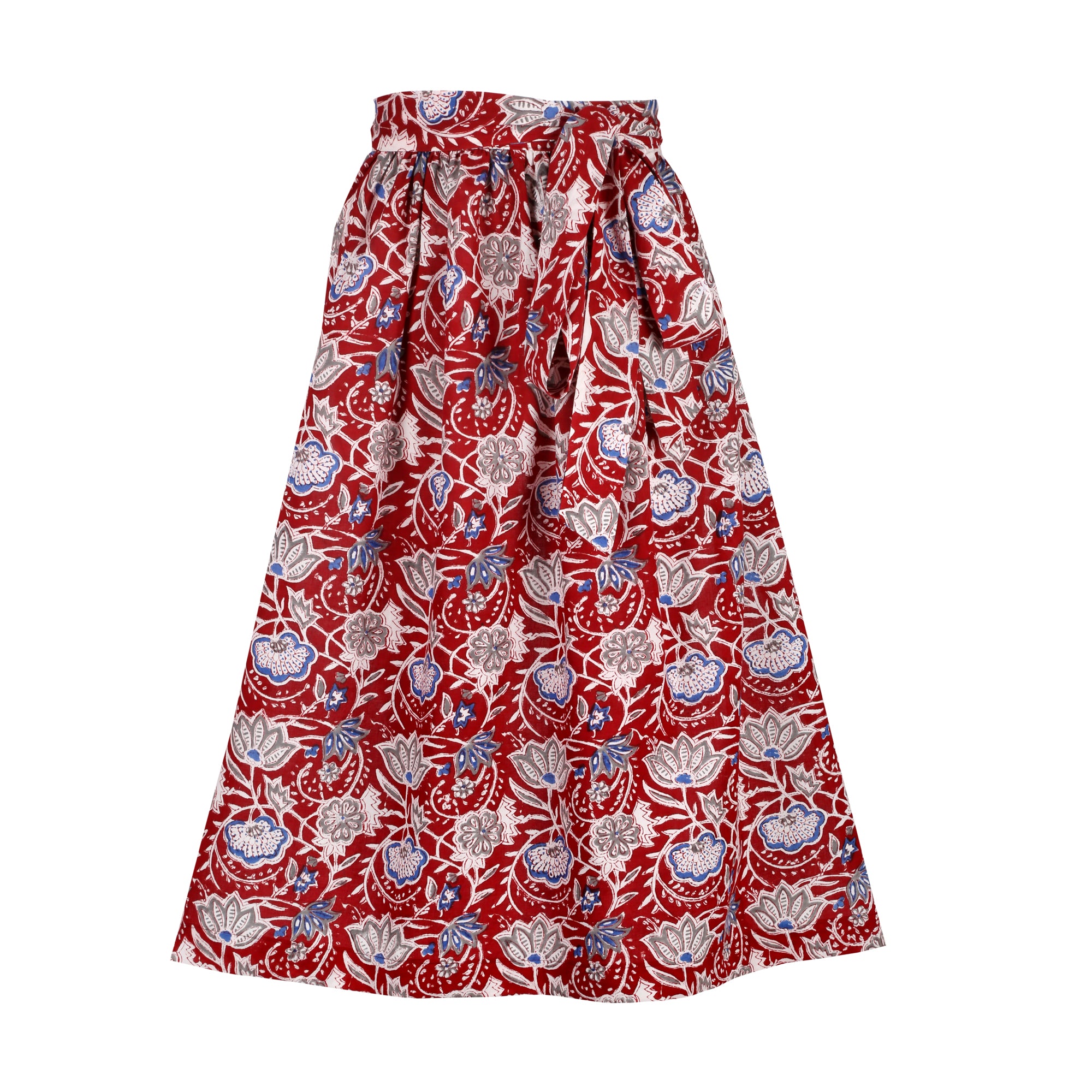 Die Rocklänge beträgt 80cm (Midi). Der Rock ist in Falten gelegt und hat eine seitliche Eingriffstasche.