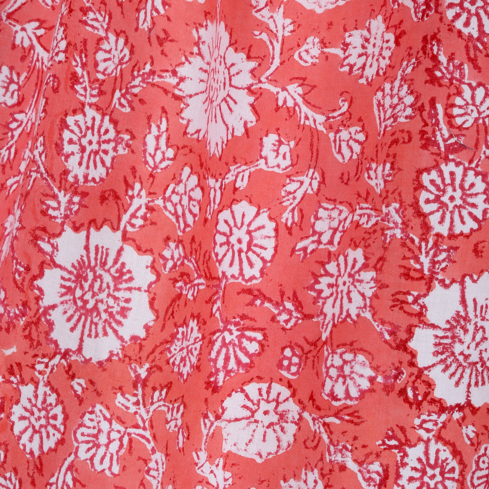 Der Baumwolldruck sticht heraus durch sein schönes korallfarbenes und weißes Blumenmuster.