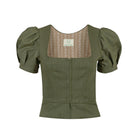 Natürliche Eleganz mit dem Dirndl Top n° 39 aus hochwertigem Leinen in einem edlen, dunkleren Olivton. Der Farbton ist zeitlos und sowohl für sommerliche als auch herbstlichere Events eine passende erfrischende Farbe. Die kurzen Puffärmel kombiniert mit einem Leinen Rock und Schürze kreieren einen eleganten Trachten Look. Das Dirndl Top lässt sich auch perfekt alltagstauglich stylen - ob mit Rock und Boots oder zur Jeans, immer gut gestyled.